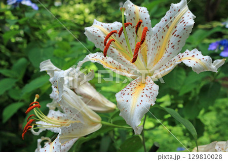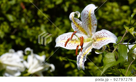 ヤマユリの花・日本固有種・ユリ根 食用 薬用・季節の花の背景素材