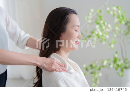 マッサージ(整体)を受ける若い女性
