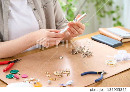 ハンドメイドのアクセサリーを作る女性 修理 調整 指輪