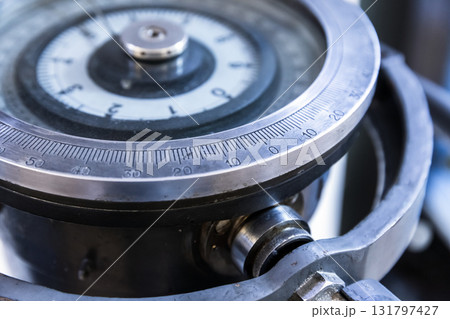 A detailed close-up of a circular dial gauge of a gyrocompass