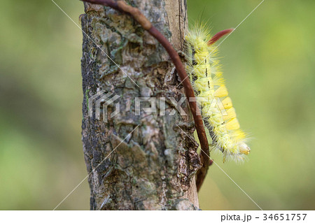 鮮やかな黄色のリンゴドクガ幼虫