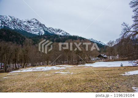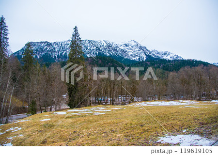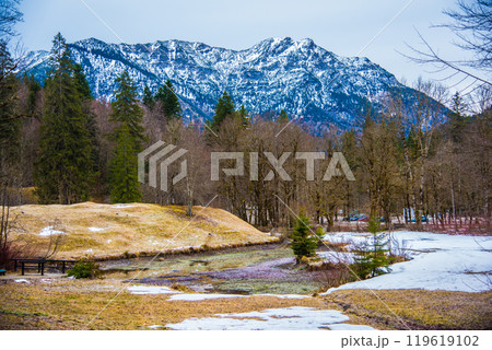 ドイツ・バイエルン州 リンダーホーフ城の駐車場からお城までの散策コースからの風景