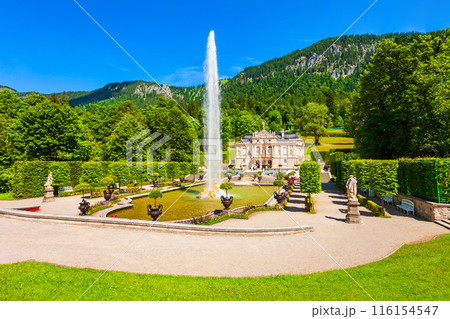 リンダーホーフ城の美しい庭園, バイエルン, ドイツ