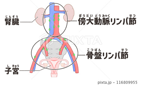 骨盤リンパ節と傍大動脈リンパ節の図解イラスト わかりやすい人体解剖図