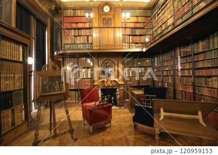 パリ郊外の美しいシャンティイ城のオマ-ル公の図書室