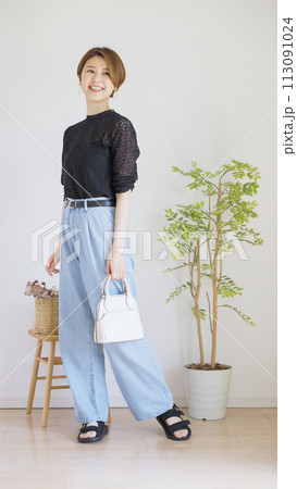 女性夏服秋服のファッションコーディネート全身(縦向き)