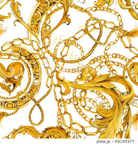 Gold damask seamless pattern. Watercolor vintage golden ornament. luxury textile print