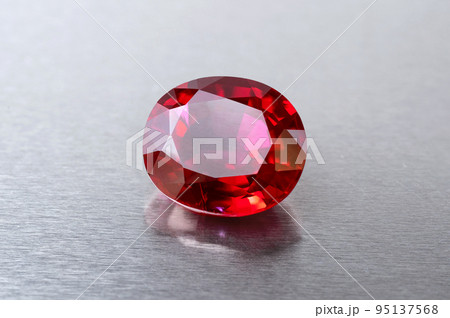 Red Ruby gemstone Oval Cut isolate on white background, close up shot