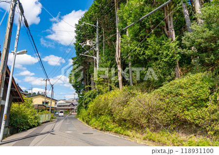 滋賀県甲賀市信楽町の紫香楽一乃宮である新宮神社の横を通っていく窯元散策路