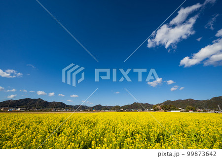 早春の南房総 鴨川の菜な畑ロード 青空のもと満開の菜の花が輝く