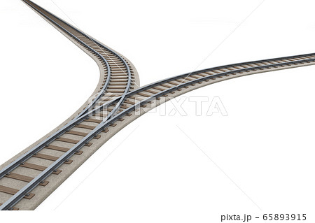 線路が二手に分かれる。二択の選択。3Dイラスト