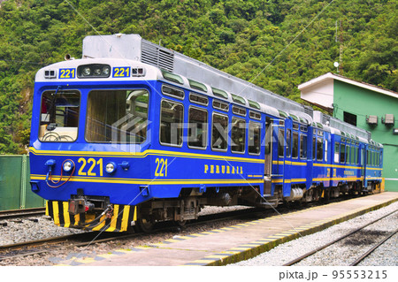 マチュピユとクスコを結ぶペルーレイルの旅客列車 マチュピチュ駅 南米 ペルー