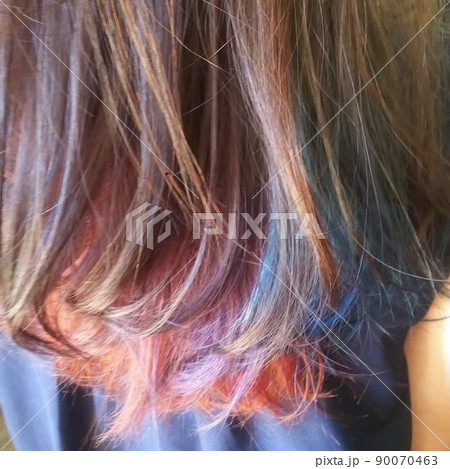 ロングヘアのレインボーカラー