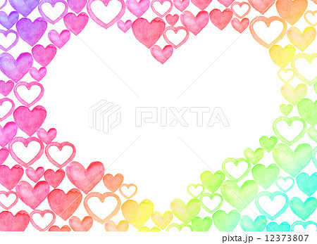ハート フレーム 虹 レインボーカラー 枠 枠飾り 囲み飾り 桃色 愛 心 ラブ 好き バレンタインデー ホワイトデー かわいい イラスト 赤色 ピンク色 ハート型 水彩 沢山 複数 いっぱい 詰まっ