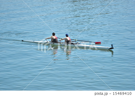 オールを漕ぐアスリート男子のダブルスカルレガッタ