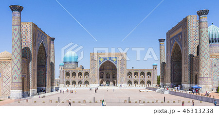 サマルカンドの名所 レギスタン広場 ウズベキスタン