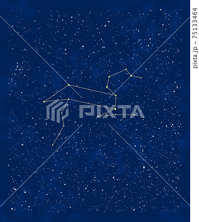 夜空に浮かぶしし座のイラスト(獅子と星座線)