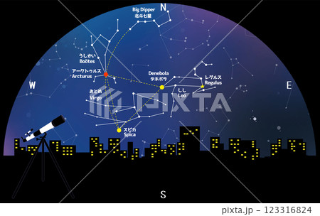 ビル群から見える春の星座と大三角形