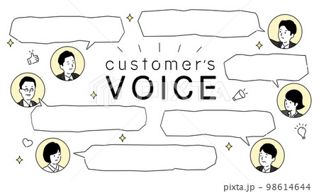お客様の声のテンプレートデザイン1、ふきだしと人物のイラスト、ベクター