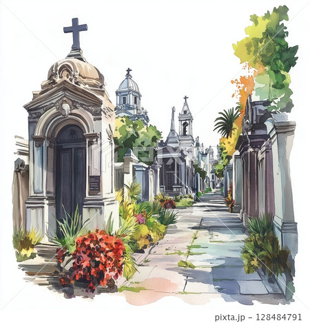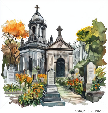 Recoleta Cemetery. Recoleta Cemetery hand drawn watercolor illustration