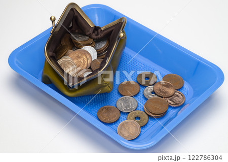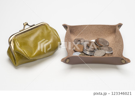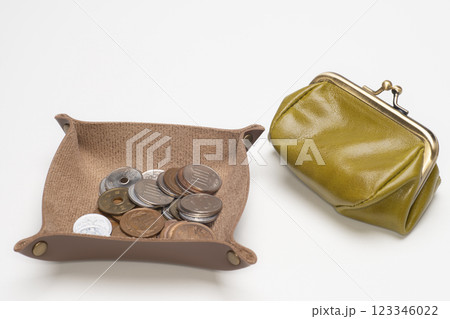 レザートレーに入った小銭