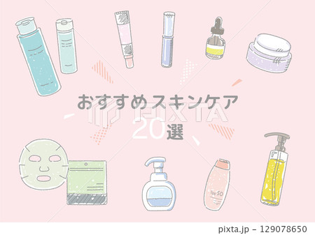 化粧品美容成分セットイラスト ピンク オレンジ イエロー