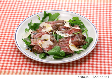 牛肉のタリアータ、ルッコラとパルメジャーノ・レッジャーノ添え。イタリア料理