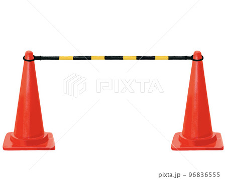 リアルな赤いカラーコーンのイラストセット コーンバー 縞模様 三角コーン