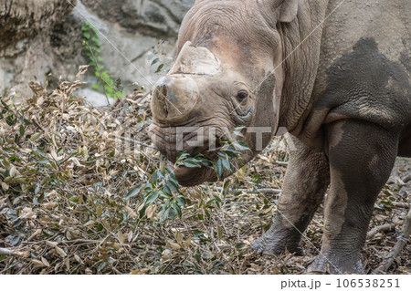 エサを食べるクロサイ(ヒガシクロサイ)天王寺動物園