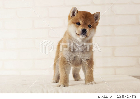 首をかしげる柴犬