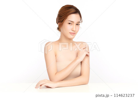 Beautiful young asian woman with clean fresh skin on white background, Face care, Facial treatment, Cosmetology, beauty and spa, Asian women portrait.