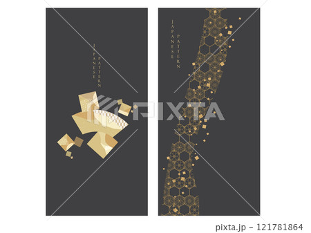 Japanese background with hand drawn wave in vintage style. Art landscape and ocean sea with shape element banner design. Gold and black texture.