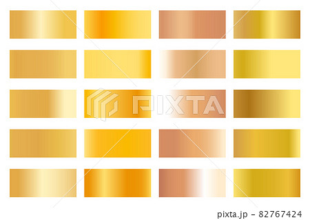 Big set of metallic color gradients. Gold, bronze, silver, blue, violet and purple texture gradation background collection. Set of gradient colors.
