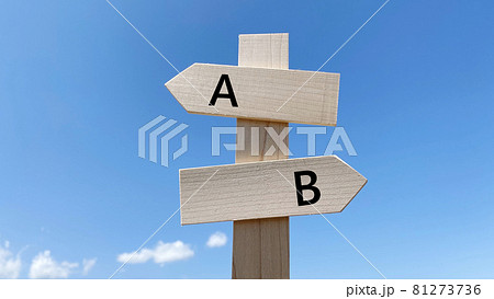 AとBの文字入りカラー道しるべと青空_真ん中
