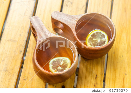 Cup of honey and lemon tea makes you feel warm and happy, with dried lemon slices creating soothing experience for people who need little self care