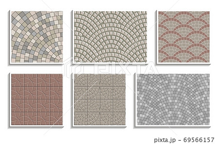 Set of seamless round pavement textures. Vector repeating patterns of radial stone material