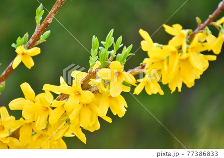 若くフレッシュなレンギョウの花