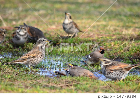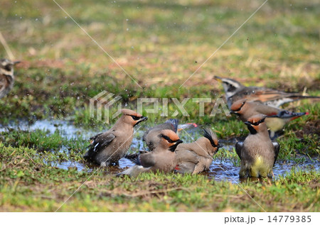 ヒレンジャク 水浴び