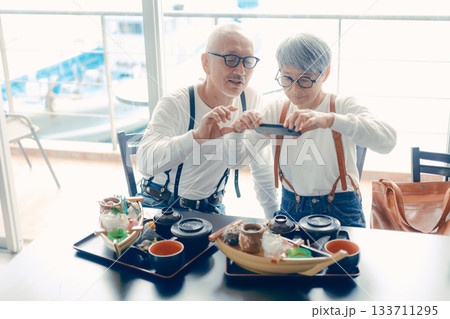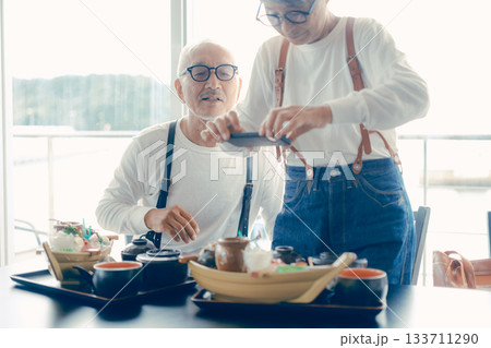 舟盛りをスマホで撮る食事前のひとこま
