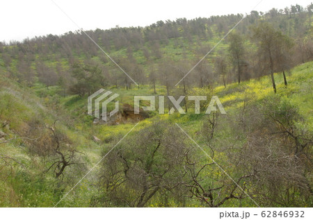 【ヨルダン】王立植物園、木々が生える緑の山の斜面