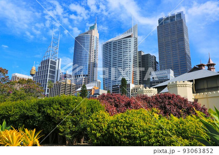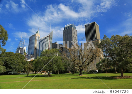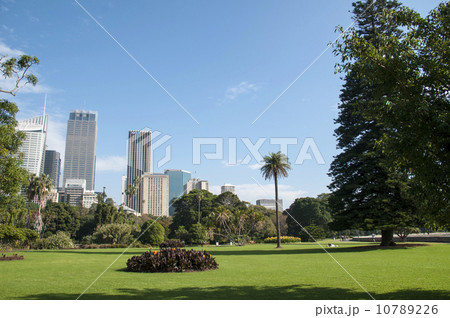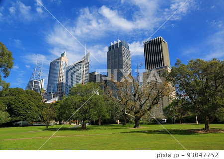 オーストラリア ニューサウスウェールズ州シドニー ロイヤル植物園から市街地の高層ビル群の景色
