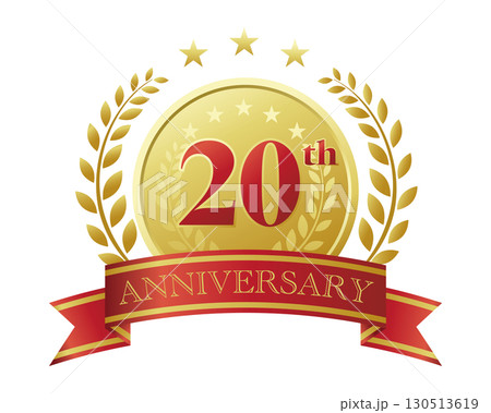 20周年記念のアイコン。赤いリボンとメダルと装飾フレーム。