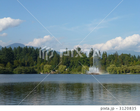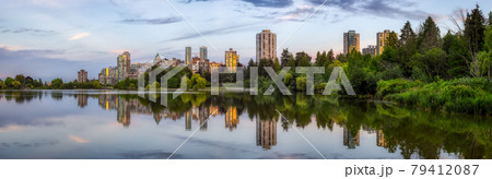 View of Lost Lagoon in famous Stanley Park in a modern city