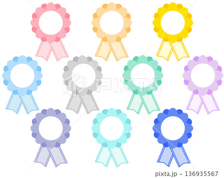 カラフルなロゼット風リボンパーツセット|ロゼット,リボン,表彰,装飾,ベクター