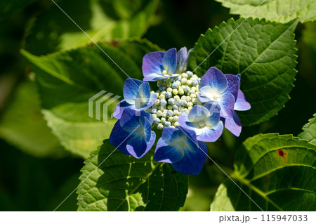 初夏の紫陽花「ロットケルヘン」のクローズアップ