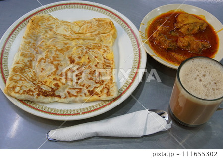 roti canai flat bread, very famous mamak food in malaysia, usual