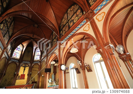 カトリック山田教会の主廊、側廊、内陣(日本 長崎県平戸市)