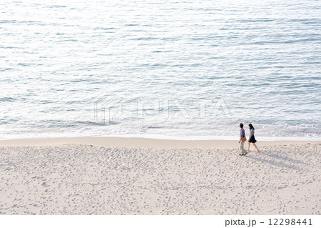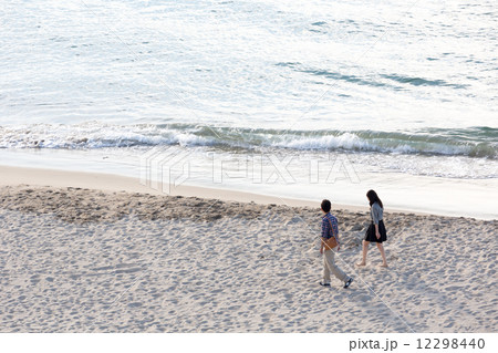 〈島根県〉道の駅キララ多伎 ビーチを散歩するカップル
