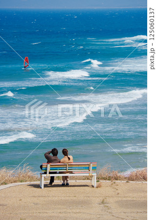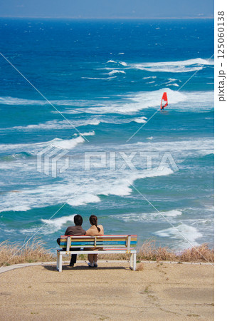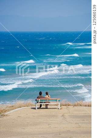 〈島根県〉道の駅キララ多伎 浜辺で佇むカップル