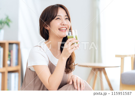 ビールを飲んでくつろぐ若い女性のライフスタイル